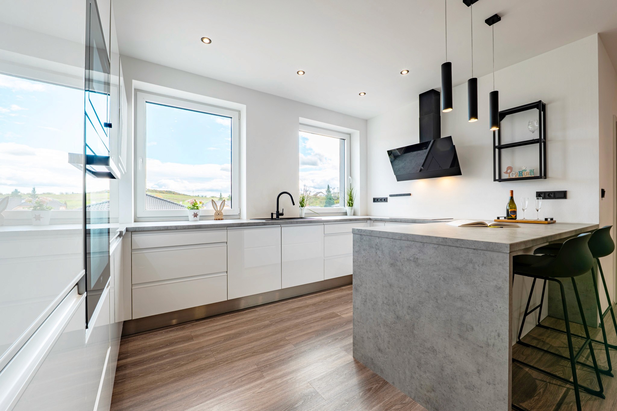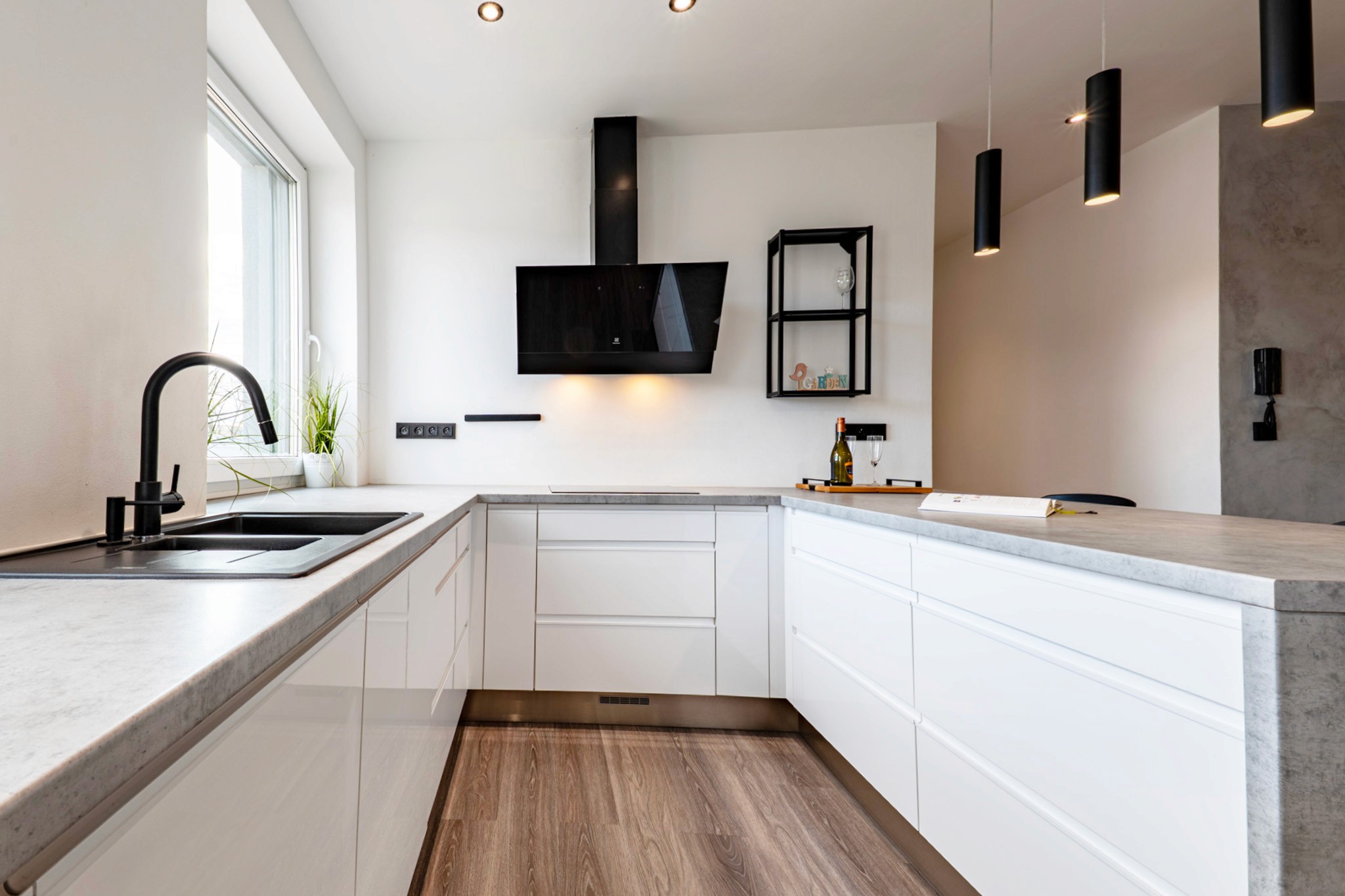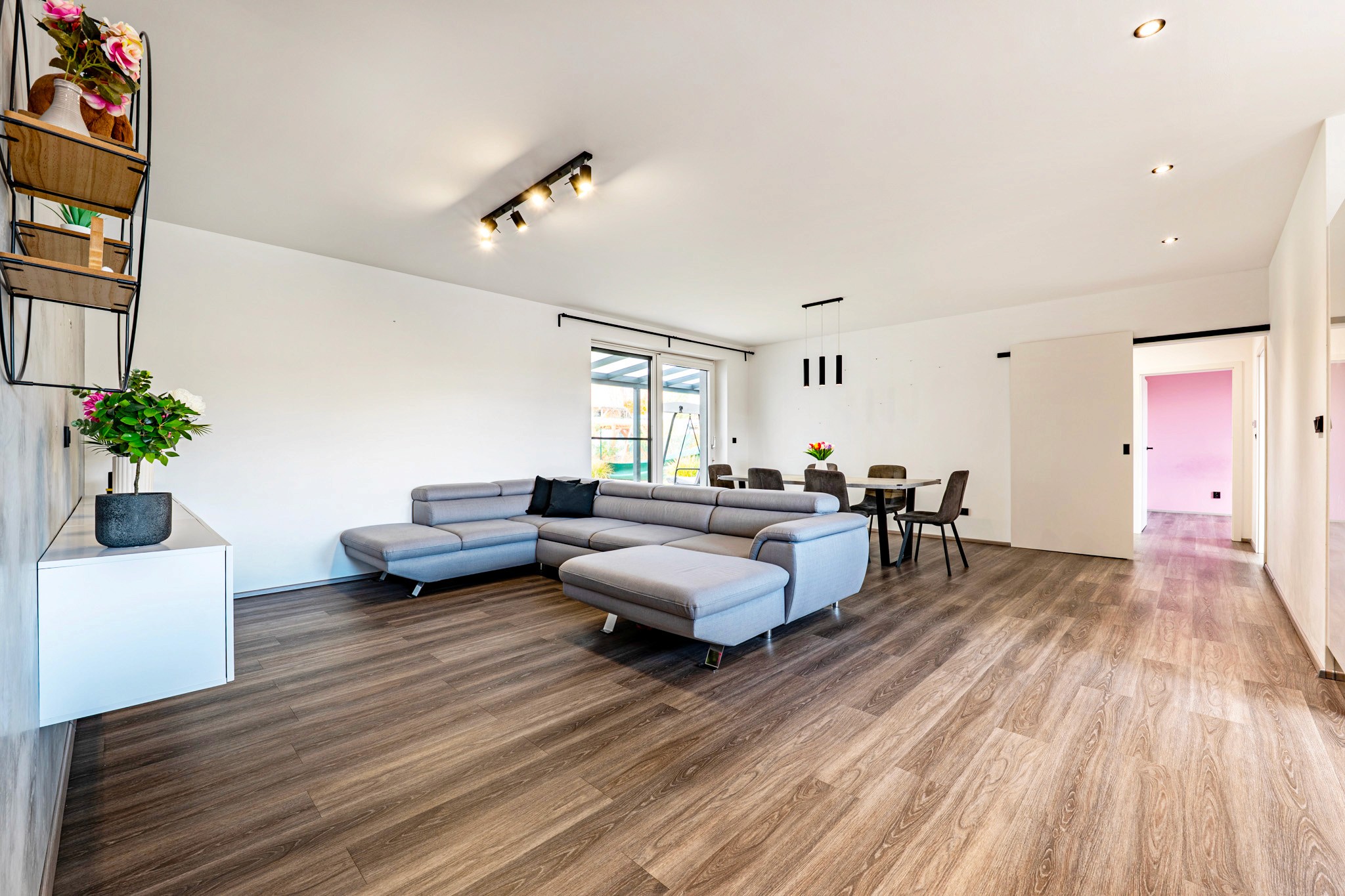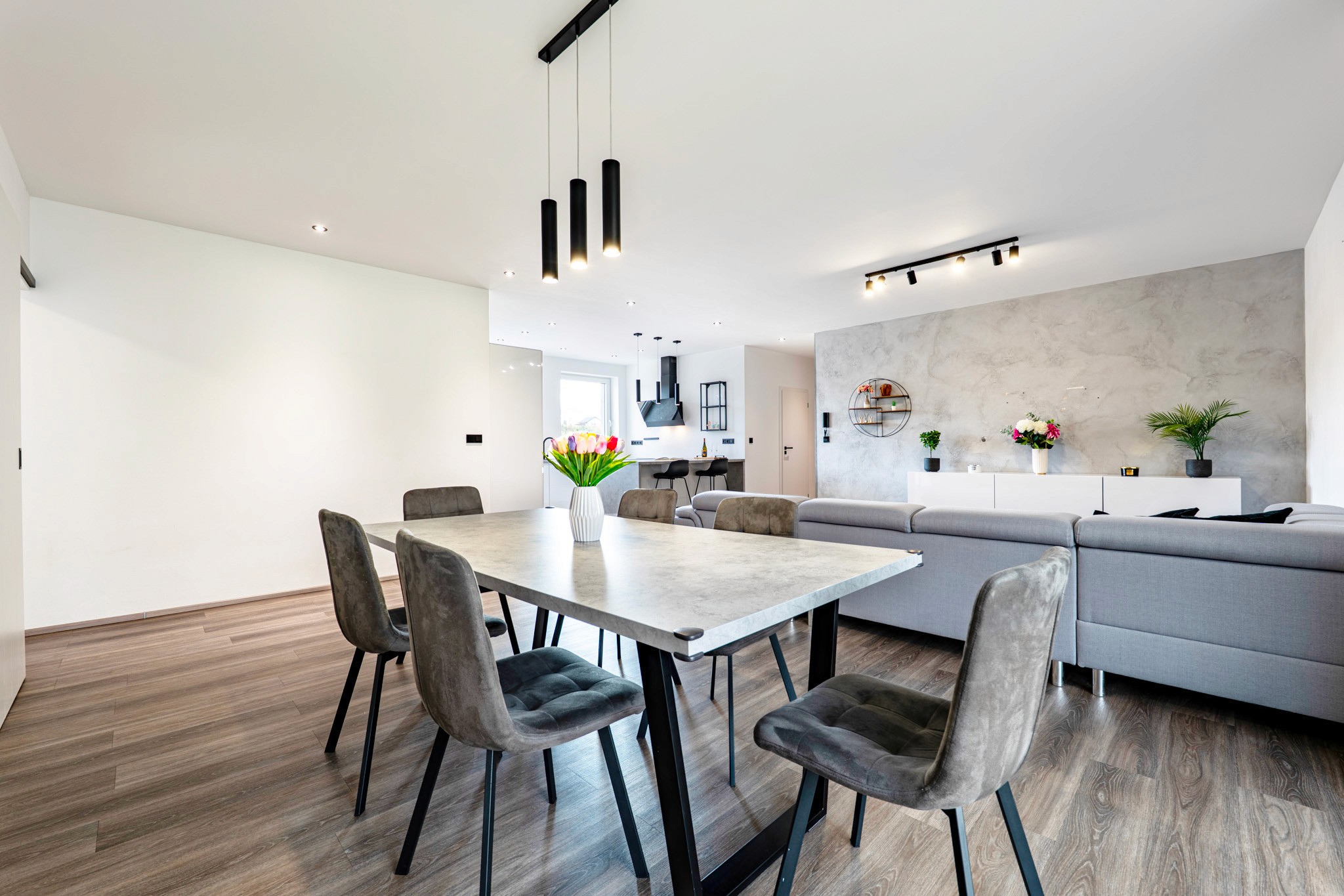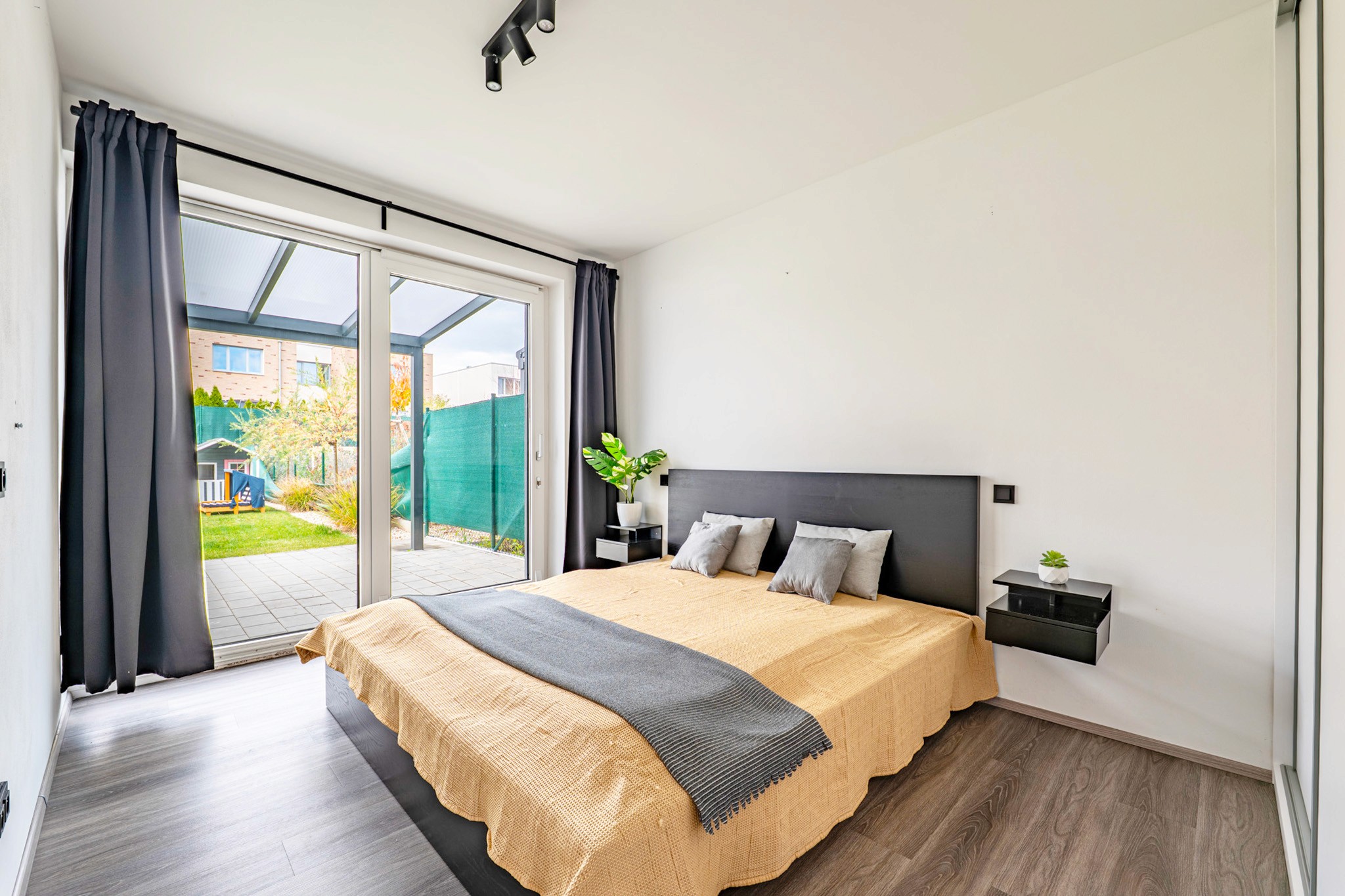 • Velkorysý obývací prostor propojený s terasou a soukromou zahradou (220 m²) – vaší oázou klidu, kde rána začínají světlem zeleně a večery voní po grilování a sdílených chvílích.